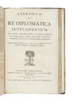 In-folio (mm 410x269). Pagine: [32], 648 [i.e. 652], [32], assente l'antiporta, con LVIII carte di tavola numerate fra p. 344 e p. 460 comprese nella numerazione. Piccolo timbro di biblioteca francese al frontespizio. Qualche sporadica gora marginale, macchiette, leggere fioriture sparse e lievi bruniture. Le carte di tavola con piccoli strappetti e restauri moderni lungo il margine interno, nel complesso in buono stato. Piena pelle coeva con fregi e titoli in oro al dorso entro tassello in marocchino, sguardie marmorizzate e tagli spruzzati di rosso, qualche abrasione e sbucciatura. [RILEGATO CON:] Mabillon Jean, Librorum de re diplomatica supplementum... Luteciae-Parisiorum: sumtibus Caroli Robustel..., 1704. Pagine: VIII, 116, Variante B secondo SBN, con 8 carte di tavola calcografiche ripiegate incluse nella segnatura tra p. 68 e p. 77. Anche in questa parte leggere bruniture, qualche sporadica gora marginale e altri minimi segni del tempo, le carte di tavola con restauri moderni lungo il margine interno. (1) Le tavole offrono una riproduzione fedele dei più antichi documenti conosciuti. Contengono numerosi scritti, firme, sigilli, motti e persino sovrastampe provenienti da diverse regioni e periodi. L'obiettivo di quest'opera era quello di chiarire la conoscenza dei documenti medievali al fine di stabilirne l'autenticità.