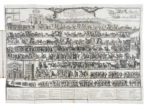 In-2° (mm 320x204). Pagine 115, [1] e [6] carte di tavole calcografiche (delle quali 5 più volte ripiegate). Antiporta calcografico. Carte croccanti e fresche con qualche piccola fioritura, strappetto al margine inferiore di C4, reastaurino a strappetto al margine inferiore di O6. Strappi restaurabili e restaurini alle pieghe delle tavole, un paio di lavorini di tarlo vicino alle attaccature delle carte alla legatura. Mezza pelle coeva con piatti marmorizzati, titoli dorati in tassello al dorso (piatto anteriore allentato, mancanze e altri difetti). (1) Splendida pubblicazione celebrativa delle nozze tra re Filippo V di Spagna (1683–1746) ed Elisabetta Farnese (1692–1766), ultima erede della dinastia che aveva governato Parma e Piacenza sin dal XVI secolo. L'opera è impreziosita da cinque magnifiche tavole ripiegate, disegnate da Ilario Spolverini (1657-1735) e incise da Giovanni Battista Sintes (1680–1760) e Francesco Maria Francia (1657–1735), che illustrano in dettaglio il corteo nuziale dello sposo accompagnato dal cardinale Gozzadini, le ricche decorazioni interne della cattedrale, la cerimonia del matrimonio e una pianta architettonica della cattedrale di Parma.