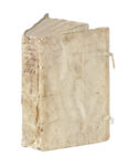 In-8° (mm 145x94). Carte 170, [34]. Marca dello stampatore al frontespizio e al colophon incisa in legno, spazi per capilettera con letterine-guida. Note di possesso manoscritte ai fogli di guardia, occasionali fioriture e macchiette sbiadite. Da X7 a 2C4 lavorini di tarlo al margine esterno che toccano leggermente il testo solo in un paio di punti. Piena pergamena coeva con titoli manoscritti e resti di bindelle (difettini). (1) Questa edizione riprende il testo della seconda del 1557 ma ha un indice molto più ampio. Adams M-476; Renouard 179:22.