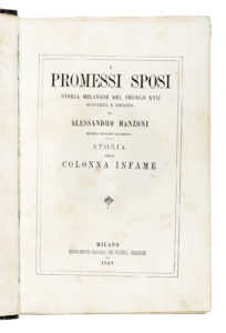 Manzoni Alessandro, I promessi sposi. Storia milanese del secolo XVII scoperta e rifatta [...]. Seconda edizione illustrata. Storia della Colonna infame. Milano: stabilimento Redaelli dei fratelli Rechiedei, 1869.