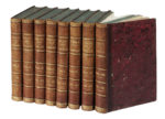 8 volumi in-8° (mm 257x168). Con 569 (di 575) tavole calcografiche finemente colorate a mano e protette da veline e accompagnate dalle relative carte di testo (non collazionate). Occhietto dei primi due volumi con angolo superiore asportato senza perdite di testo, qualche tavola pallidamente brunita (più fortemente le seguenti: 41, 51 nel vol. 1, 231 nel. vol. 4, 475, 476, 489, 492, 493, 495, 496 nel vol.7, qualche tavola fiorita (238, 473, 478), una galleria di tarlo all'angolo delle tavole 448-451 e relative carte di testo nel settimo volume, qualche fioritura occasionale alle veline e alle carte di testo (più forti verso la fine dei voll. 7-8), piccolo alone al margine interno delle prime e ultime carte di testo del vol. 8. Mezza pelle coeva con titoli e decorazioni dorate ai dorsi, piatti marmorizzati, tagli spruzzati d'azzurro (abrasioni e sbucciature). Tutti i volumi con i loro segnacoli in seta. (8) Prima edizione del più importante periodico francese dell'epoca dedicato ai fiori, iniziato da De Launay (1750-1816) e continuato dopo la sua morte da Deslongchamps (1774-1849). Le splendide tavole sono tratte dai dipinti di Pancrace Bessa (1772-1835), pittore, incisore e illustratore francese. Fu allievo dell'incisore Gérard van Spaendonck e lavorò con Pierre-Joseph Redouté del quale assimilò il delicato trattamento dei particolari dei soggetti, normalmente fiori e frutti e più raramente animali. Insieme con Redouté, Jean-Louis Prévost e Adélaïde Labille-Guiard, il Bessa portò la Francia al vertice nel genere della pittura botanica. Nel 1823 successe a Henri Redouté nella funzione di pittore del Museo di storia naturale di Parigi.