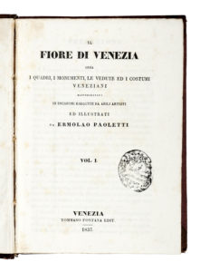Paoletti Ermolao, Il fiore di Venezia ossia i quadri, i monumenti, le vedute, ed i costumi veneziani... Volume I (-IV). Venezia: Tommaso Fontana Edit., 1837.