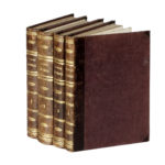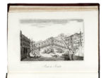 4 volumi in-8° (mm 190x130). Pagine 223, con [4] carte ripiegate e [45] carte di tavole; 285, [3 di cui 2 bianche], con [2] carte ripiegate e [68] carte di tavole; 216 con [45] carte di tavole; 156, con [1] carta di tavola ripegata e [32] carte di tavole. In totale questo esemplare ha [7] carte di tavole ripiegate e [190] carte di tavole a differenza degli esemplari censiti da SBN che ne contano [5] ripiegate e [186] di tavole. Timbro illeggibile ai frontespizi, fioriture sparse (in alcuni punti più forti), alcune carte con arrossature allo specchio di scrittura, legatura staccata anteriormente dal secondo volume, strappo nel testo senza perdite alla prima carta del fascicolo 18 del terzo volume e altri trascurabili segni del tempo. Mezza pelle con punte, piatti in percallina con motivi floreali, titoli e fregi dorati al dorso. (4) Ottima guida di Venezia, profusamente illustrata. Predari p. IX: «scritta con rara dottrina, e copiosissima di notizie peregrine e nuove». Cicogna 4503: «Opera che fa onore all'autore, e la più copiosa di notizie Veneziane che sia stata pubblicata nel genere delle Guide e Descrizioni di Venezia».