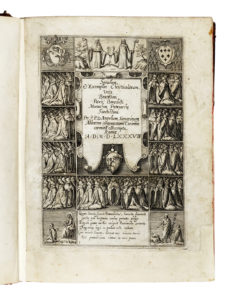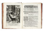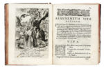 In-4° (mm 208x152). Pagine [16], 246, [6]. Frontespizio con stemmi del dedicatario Odoardo Farnese e di papa Sisto V (Leone rampante su torre, in scudo sormontato da palla con croce) e 51 tavole calcografiche su disegni di Bernardino Passeri, testo in corsivo e romano, iniziali e fregi xilografici. Frontespizio con rinforzo all'attaccatura e restauro al margine inferiore, qualche pallida gora principalmente marginale, occasionali macchioline, strappetto al margine esterno di B2 e piccolo restauro a strappetto al margine esterno di I2, alcune carte lievemente ingiallite. Piena pelle con titoli dorati in tassello al dorso e tagli rossi (difettini). Complessivamente bella copia. (1) La prima edizione, pubblicata in folio nel 1579, riscosse un tale successo da rendere necessaria la stampa di questa edizione in quarto.