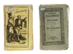 2 volumi in-8° (mm 158x100). Pagine 253. Antiporta figurato. Alcuni fascicoli allentati (parte di uno staccato), occasionali fioriture sbiadite e altri minimi segni del tempo. Brossura editoriale originale gialla con illustrazione e titoli al piatto anteriore, titoli anche al dorso (difettini). [SI AGGIUNGE:] Silvio Pellico, Tre nuove tragedie. Firenze: per V. Batelli e figli, 1832. Pagine 178. Antiporta con ritratto dell'autore. Piccole gore sbiadite al frontespizio e all'antiporta, fascicoli allentati (alcuni staccati), occasionali fioriture sbiadite. Brossura editoriale originale con titoli al piatto anteriore, piatto posteriore e dorso assenti. (2)