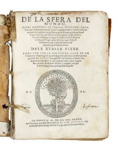 Piccolomini Alessandro, De la sfera del mondo. Libri quattro in lingua toscana [...] De le stelle fisse. Libro uno con le sue figure, e con le sue tavole... In Venetia: al Segno del Pozzo, 1540.