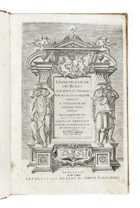 In-folio (mm 188x90). Pagine: [24], 211, [1]. Bella bordura architettonica in rame al frontespizio e 48 splendide mappe a mezza pagina nel testo, il tutto inciso in rame dal Porro; testatine, capilettera e finalini in legno. Ottima copia con fresche impressioni, solo qualche rara macchiolina di inchiostro e margini leggermente rifilati, postille di antica mano. Piena pergamena rigida coeva ma rimontata con piccoli restauri agli angoli e con sguardie rinnovate, titoli manoscritti al dorso, tagli spruzzati di rosso. (1) Quarta edizione, con 48 mappe delle isole incise in rame. Rispetto alla terza edizione del 1590 vi è stata aggiunta la Descrittione dell'Istria con relativa mappa, assai più grande delle altre, seguita dalle descrizioni, senza mappe, dell'isola d'Elandia, dell'isola de Gotti; dello scoglio Bas in Iscotia, Della maravigliosa natura di due fontane, che sono nell'Inghilterra.