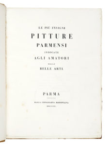 Rosaspina Francesco, Le più insigni pitture parmensi indicate agli amatori delle belle arti. Parma: dalla tipografia bodoniana, 1809 [i.e. 1816].