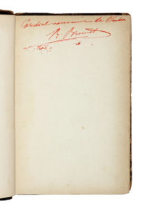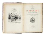 In-4° (mm 177x117). Pagine: [6], XII, [2], 91, [3], IV, 57, [1]; ritratto calcografico dell'autore in antiporta e 72 carte di tavola di cui 2 ripiegate. Volume uniformemente ingiallito con qualche macchiolina e leggera fioritura, le tavole comunque con fresche impressioni. Piena pelle coeva con il dorso un po' sciupato e altri minimi difetti. SI AGGIUNGE: Romuald Brunet, Traité d'escrime... Paris: Ed. Rouveyre et G. Blond, 1884. Grazioso volume con dedica autografa dell'autore. Non collazionato con molte illustrazioni sull'arte della scherma. Mezza pelle coeva con piatti marmorizzati e titoli in oro al dorso (sciupata). (2) Prima edizione di questo autorevole manuale di scherma di Jean-Antoine de Saint-Martin, ufficiale dell'esercito francese di stanza in Austria e uno dei migliori apprendisti del celebre Danet, a sua volta considerato l'autorità in materia di scherma del XVIII secolo. Apprezzato compendio delle più antiche tecniche francesi e italiane. La seconda sezione tratta del combattimento con la spada a due mani o con lo spadone ("l'espadon").
