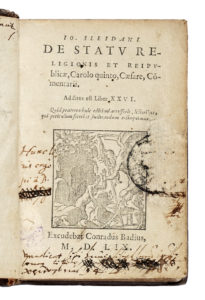 Sleidan Johann, De statu religionis et reipublicae, Carolo quinto, Caesare, Commentarii. Additus est Liber XXVI... [Ginevra]: Excudebat Conradus Badius, 1559.