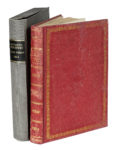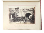 In-4° (mm 310x215). Pagine: [12], 287, la numerazione delle pagine inizia da p.8; con 24 foto all'albumina applicate su cartoncini in fine. Ottima copia se non per qualche piccolo restauro all'ultimo cartoncino. Le fotografie all'albumina in ottimo stato. Pieno cartonato coevo rosso con i piatti decorati con cornice dorata floreale e una impressione a secco al centro, presenta abrasioni e sbucciature sia ai piatti che al dorso. Copia conservata entro cofanetto moderno. (1) Rara opera a trovarsi corredata con le fotografie. L'opera si apre con una dedica del Barone Pier Domenico Costantini Baldini a S.S. Pio IX datata 26 novembre 1864. L'opera, di particolare interesse per Roma e lo Stato della Chiesa, è suddivisa in varie sezioni: Belle Arti (scavi, restauri, commercio), Lavori idraulici (1859–1863), Telegrafi Pontifici, Strade nazionali (1859–1863), Marina Mercantile (personale, navi, statistiche), Commercio, Arti e Industrie, Agricoltura, Annona e Grascia, Strade Ferrate. Oltre a bilanci e traffici commerciali, il Costantini descrive dettagliatamente opere pubbliche, in particolare quelle ferroviarie, corredandole con foto del fotografo ufficiale del Papa.
