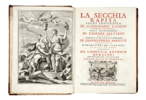 Tassoni Alessandro, La secchia rapita. Poema eroicomico [...] colle dichiarazioni di Gaspare Salviani romano, si aggiungono la prefazione, e le annotazioni di Giannandrea Barotti [...] e la vita del poeta composta da Lodovico Antonio Muratori... In...