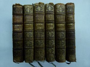 a faites dans toutes les cours où il s'est trouvé, avec une dissertation curieuse de leurs forces, politique & religion. [...] Nouvelle édition augmentée dans le corps de l'ouvrage, enrichie de figures en taille-douce. Cologne, Amsterdam, Erasme Kinkius (ou Kenkus), 1715 ; 6 vol. in-12, veau brun, dos à nerfs ornés de motifs dorées, pièces de titre marrons [Rel. de l'époque], reliures frottées, accrocs. 1) Frontispice gravé sur cuivre, [23] ff., 414 p., [4] ff. et 4 figures et plans h. t. gravés sur cuivre (3 repliés).- 2) [4] ff., 396 p., [6] ff., et 5 figures h. t. gravées sur cuivre.- 3) 444 p., [6] ff. et 4 figures h. t. gravées sur cuivre, dont une repliée.- 4) [2] ff., 370 p., [5] ff., et 2 plans h. t. gravés sur cuivre et repliés.- 5) 456 p., [6] ff. et 1 figure h. t. gravée sur cuivre.- 6) 366 p., [4] ff., et 5 figures h. t. gravées sur cuivre. En tout, 22 figures gravées sur cuivre. L'histoire de la chrétienté au XVIIe siècle, vu par les yeux de l'espion turc fictif Mohammed (appelé Mehemet sur les frontispices). L'ouvrage devint très populaire, fut traduit en de nombreuses langues et réimprimé de nombreuses fois. On peut considérer ce livre comme étant à la source d'un nouveau genre littéraire dont les Lettres persanes de Montesquieu sont un des plus fameux exemples. "The first volume was the work of Giovanni Marana and was published in 1684 by Claude Barbin under the title of L'Espion du Grand Seigneur ; the name of the turkish spy was mahmut. This volume was translated into english in 1687. The subsequent volumes are not the work of Marana but are most likely the work of an Englishman, possibly the journalist William Bradshaw, and they were first published in English from 1691-4. The folding views in the french edition include Constantinople and the Dardanelles ; other plates include costume figures - Persian, Arab, Tartar, etc." (Atabey). Cet ouvrage fut mis à l'Index. Déchirures sans manque au figures repliées, mouillures claires aux 1er et 3e vol. Quérard, V, 501 (indique que l'ouvrage est "continué par Cotolendi et autres depuis le 5e volume"). Vente Atabey, The Ottoman World, n° 759 (éd. de 1710). Blakmer, 1072.