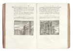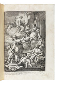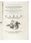 In-folio (mm 375x258). Pagine [8], XXXII, 462, [2] e con XXV carte di tavole doppie. Illustrazioni calcografiche e xilografiche, ogni tavola è preceduta da carta contenente la relativa didascalia, antiporta calcografica, vignetta calcografica con allegoria dell'architettura sul frontespizio, testate e iniziali figurate, calcografiche e xilografiche. Alcune carte leggermente ingiallite e altre con lieve arrossamento, piccola macchia violacea al margine interno del verso dell'antiporta e al recto del frontespizio, strappetto al margine inferiore di M1 e O4, macchietta nel testo di N3 (che resta comunque leggibile), sporadiche fioriture sbiadite, arrossatura su V3-V4, alone d'umidità da 2I2 a 2L1 che causa l'adesione del margine superiore tra le carte 2K1 e 2K2 nel testo. Mezza pergamena con titoli manoscritti al dorso e piatti in cartonato marmorizzato (difettini). (1) Prima edizione bilingue, italiana e latina, col commento di Bernardo Galiani. Impreziosita dalle splendide tavole incise su disegni dello stesso Galiani da Francesco Cepparuli. Berlin Kat., 1820; Brunet V, 1330; Cicognara, 733; Fowler, 424.