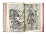 2 opere in 1 volume in-folio (mm 270x180). Pagine [8 incluso il frontespizio], 115, [1] e con [4] carte di tavole calcografiche. Frontespizio allegorico calcografico, iniziali, testatine e finalini xilografici, ricco di incisioni a piena pagina (una bipagina) di Pietro Bertelli. Assenti B1 e B3, con B2 e B4 provenienti da un altro esemplare (pallidamente brunite), tavola sostitutiva incollata a pagina 56 e altri trascurabili segni del tempo. [RILEGATO CON:] Poleni Giovanni, De castellis per quae derivantur fluviorum aquae habentibus latera convergentia liber. Padova: Giuseppe Comino, 1718. Pagine [6], 65, [3 di 5, assente ultima bianca] e [1] carta di tavola calcografica. Marca editoriale al frontespizio, iniziali e finalini xilografici, 1 tavola incisa. Carte fresche. Piena pelle di vitello screziata del XVIII secolo (cerniera della copertina superiore debole), dorso con decori dorati e titoli dorati in tassello rosso, tagli rossi e ex libris North Library, Macclesfield al contropiatto anteriore e impresso a secco al margine superiore del frontespizio e della prima tavola. Lotto non passibile di restituzione. (1) Quarta edizione del celebre compendio di macchine ideato da Zonca, comprendente una varietà di dispositivi azionati ad acqua, forza animale o motrice umana, tra cui una pressa da stampa, mulini e una vite perpetua. L'opera, apparsa per la prima volta a Padova nel 1607, presenta in questa tiratura, secondo Riccardi, le migliori impressioni delle tavole. Segue la prima edizione del trattato di Poleni, autore poliedrico che spazì dall'architettura (realizzando un'importante edizione di Vitruvio) all'astronomia, e che fu titolare delle cattedre di astronomia e fisica presso l'Università di Padova. In quest'opera si concentra su tematiche di idraulica e idrodinamica. Riccardi I/2a p., col. 669; p. 292.