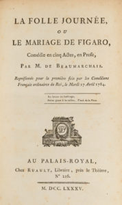 Pierre-Augustin Caron de BEAUMARCHAIS. La Folle journée, ou Le Mariage de Figaro... Palais-Royal, Ruault, 1785. In-8, demi-basane verte, dos lisse orné en long (Reliure du début du XIXe siècle). Brunet, I-719 / Lh., 66 / Tchemerzine-Scheler,...
