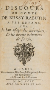 Comte Roger de BUSSY-RABUTIN. Discours à ses enfans, sur le bon usage des adversitez, & les divers événemens de sa vie. Paris, Anisson, 1694. In-12, veau tacheté, dos à 5 nerfs orné (Reliure de l'époque). Tchemerzine-Scheler, II-169 /// (6f....