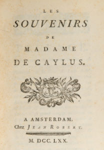 Marthe-Marguerite Le Valois, marquise de CAYLUS. Les Souvenirs. Amsterdam (Genève), Jean Robert, 1770. In-8, veau marbré, triple filet doré, dos à 5 nerfs orné d'un fer répété à la toile d'araignée (Reliure de l'époque). Bengesco, 1907 /...