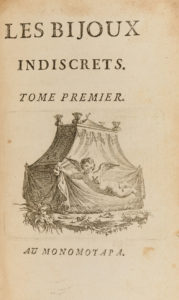 [Denis DIDEROT]. Les Bijoux indiscrets. Au Monomotapa (Paris), s.d. (1748). 2 volumes in-12, veau marbré, triple filet, dos lisses ornés (Reliure de l'époque). Tchemerzine-Scheler, II-922 /// I. (5f.)-370 / II. (2f.)-420. Édition originale...