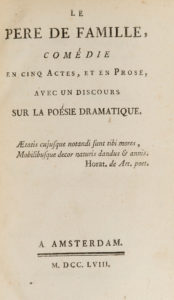 [Denis DIDEROT]. Le Père de famille, comédie en cinq Actes, et en Prose, avec un discours sur la poésie dramatique… Amsterdam, s.n., 1758. 2 parties en un volume in-8, veau marbré, dos lisse joliment orné (Reliure de l'époque)....