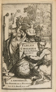 II. (1f.)-141 à 268-(1f.) / III. 117-(1f.) / IV. (1f.)-119 à 233-(1f.). Édition hollandaise parue du vivant de La Fontaine. Elle est illustrée d'un titre gravé en frontispice, ainsi que de 207 gravures sur cuivre à demi-page, pour la plupart signées Jean van Vianen. Cette édition devrait se compléter d'une cinquième et sixième parties contenant trois fables et quelques contes de La Fontaine, le reste se composant de fables de divers auteurs.