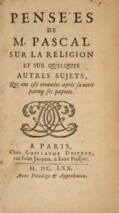 Blaise PASCAL. Pensées… sur la religion et sur quelques autres sujets, Qui ont esté trouvées après sa mort parmy ses papiers. Paris, Guillaume Desprez, 1670. In-12, veau granité, dos à 5 nerfs orné (Reliure de l'époque). La Rochebillière,...
