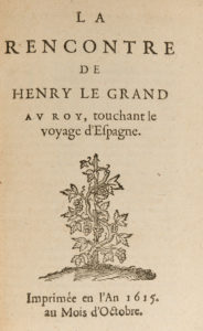 l'auteur, prenant la parole au nom de Henri IV, s'adresse à son fils Louis XIII pour le mettre en garde contre les Espagnols en général et contre le projet de mariage avec Anne d'Autriche, infante d'Espagne. Un double mariage franco-espagnol avait été prévu pour rapprocher les deux pays. Anne d'Autriche épousa Louis XIII le 16 novembre 1615 à Bordeaux tandis qu'Elisabeth, soeur de Louis XIII, épousa l'infant Philippe, fils de Philippe III d'Espagne. Petit accroc aux coupes.