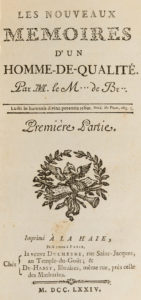 [Nicolas-Edme RESTIF de LA BRETONNE]. Les Nouveaux mémoires d'un homme de qualité par M. le M… de Br... La Haye, Veuve Duchesne, De-Hansy, 1774. 2 volumes in-12, veau marbré, dos lisses très joliment ornés (Reliure de l'époque). Lacroix, 118...