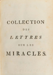 VOLTAIRE. Collection des lettres sur les miracles. Neuchatel, s.n., 1767. In-8, veau blond, triple filet, dos à 5 nerfs orné, roulette intérieure (Reliure de l'époque). Bengesco, II-157 /// (2f.)-258. Réimpression de vingt lettres sur les...