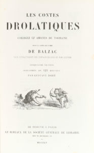 Leblanc, 39 / Vicaire, I-190 /// XXXI-614-(1f.). Cinquième édition des Contes drolatiques et premier tirage des 425 illustrations dans le texte de Gustave Doré gravées sur bois par Lavieille, Pisan, Riault, Bouton, Verdeil, Diolot, etc. Très bel exemplaire malgré de minimes pâles rousseurs à quelques feuillets