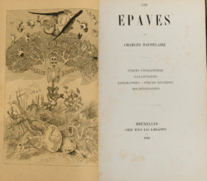 Charles BAUDELAIRE. Les Épaves. Pièces condamnées - Galanteries - Épigraphes - Pièces diverses - Bouffonneries. Bruxelles, chez tous les libraires (Poulet-Malassis ?), 1866 (1874 ?). In-8, maroquin vert à long grain, dos à 4 nerfs (Reliure de...