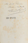 l'époque). Talvart, I-288 / Vicaire, I-348 /// (2f.)-163. Édition non décrite par Vicaire mais répertoriée par Talvart qui la pense publiée à 500 exemplaires. L'ouvrage possède le frontispice à l'eau-forte de Félicien Rops, ici tiré en trois états, sanguine, premier état et état définitif en noir. Exemplaire portant sur le faux-titre un ex-dono : Au poète Frémine / Souvenir cordial / (signature illisible). Charles Frémine (1841-1906) fut journaliste, poète et écrivain français. Il se fit connaître par ses poèmes inspirés de sa Normandie natale puis fut membre du club littéraire Les Hydropathes. Il fut l'ami de Rodin, de Rollinat ou encore de Charles Cros mais, affecté d'une maladie du larynx inguérissable, il mit fin à ses jours en 1906. Dos passé avec les charnières fendues et la coiffe supérieure manquante ; rousseurs éparses et petit trou au dernier feuillet.