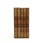 Alexandre DUMAS. Impressions de voyage. Paris, Au bureau de la Revue des deux-mondes, Dumont, 1834-1837. 5 volumes in-8, demi-veau marron, dos lisses ornés (Reliure de l'époque). Lh., 224 / Vicaire, III-342 /// I. (2f.)-388, 1 pl. / II. (2f.)-368,...