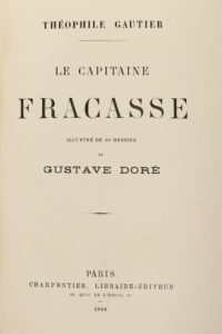 Théophile GAUTIER. Le Capitaine Fracasse. Paris, Charpentier, 1866. In-4, demi-maroquin noir à long grain à coins, dos à 4 nerfs orné (Reliure de l'époque), étui moderne. Leblanc, 118 / Vicaire, III-926 /// (2f.)-500-(1f.). Édition illustrée...