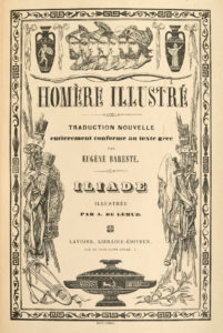HOMÈRE. Iliade. - Odyssée. Paris, Lavigne, 1842-1843. 2 volumes in-8 demi-maroquin bordeaux à coins, dos à 5 nerfs ornés de grecques et filets dorés, couvertures et dos (Champs), étui moderne. Vicaire, IV-164 /// I. (3f.)-XXIV-565-(2f.) / II....