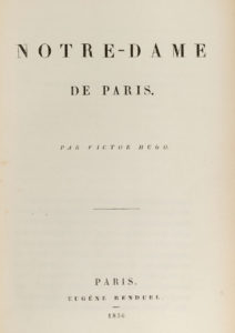 Victor HUGO. Notre-Dame de Paris. Paris, Eugène Renduel, 1836. In-8, demi-chagrin bleu, plats de papier chagriné bleu avec filets et fleuron central dorés, dos à 4 nerfs orné, tranches dorées (Reliure de l'époque). Vicaire, IV-258 ///...