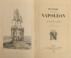 N, décor central imitant un grand médaillon avec filets et petits fers dorés et noirs portant au centre l'aigle impérial doré, dos à 5 nerfs orné de même, tranches élégamment ciselées à l'or et en noir, dentelle intérieure dorée, étui (J. Wright). Carteret, III-375 / Lartigue-Pontbriand, 365 / Vicaire, V-98 /// 802. Édition originale parue en 100 livraisons et premier tirage des très nombreuses illustrations gravées sur bois d'après Horace Vernet, dont un frontispice gravé par Brevière et 500 vignettes dans le texte. Très bel exemplaire relié par J. Wright, relieur anglais ayant exercé au milieu du XIXe siècle. Quelques pâles rousseurs. Ex-libris non identifié avec la devise Vigilantibus (de la famille Acheson comte de Gosford, ou de la famille Briston)