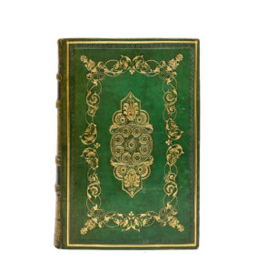 Alain-René LE SAGE. Histoire de Gil Blas de Santillane. Paris, Paulin, 1835. Fort in-8, veau vert orné d'un décor romantique doré et à froid avec grand fleuron rosacé central et encadrement de volutes dorées, dos à 4 nerfs orné, tranches...
