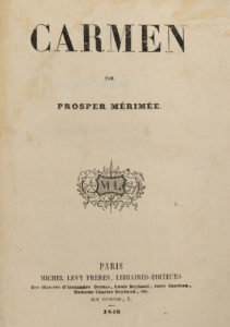 Prosper MÉRIMÉE. Carmen. Paris, Michel Lévy frères, 1846. In-8 grand de marges, demi-maroquin citron à coins, dos lisse orné (Reliure de l'époque), chemise et étui modernes. Carteret, II-148 / Lh., 417 / Vicaire, V-724 /// (2f.)-363. Édition...