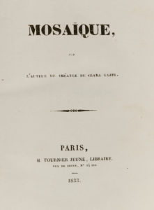 [Prosper MÉRIMÉE]. Mosaïque, par l'auteur du théâtre de Clara Gazul. Paris, H. Fournier jeune, 1833. In-8, demi-veau améthyste, dos lisse orné de filets dorés et à froid (Reliure de l'époque). Vicaire, V-710 /// (2f.)-439. Édition...
