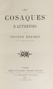 - Les Cosaques d'autrefois. Michel Levy, 1865. - Études sur les arts au Moyen Âge. Michel Levy, 1875. - Portraits historiques et littéraires. Michel Levy, 1874. - Théâtre de Clara Gazul, comédienne espagnole ; suivi de La Jacquerie, scènes féodales et de la famille Carvajol. Charpentier, 1842. Édition originale des Cosaques d'autrefois et des Portraits historiques et première édition in-12 pour les trois autres volumes. Quelques rousseurs aux Portraits historiques et au Théâtre de Clara Gazul.