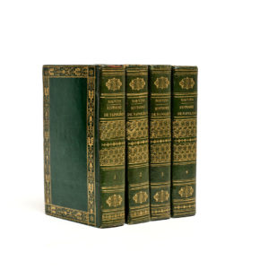 Jacques Marquet de Montbreton, baron de NORVINS. Histoire de Napoléon. Paris, Ambroise Dupont et Cie, 1828-1830. 4 volumes in-8, maroquin vert Empire, large encadrement droit doré sur les plats avec urnes et rinceaux, dos lisses joliment ornés,...