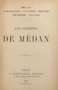 collective de ces six nouvelles ayant pour thème la guerre de 1870, contenant : Émile Zola. L'Attaque du moulin. - Guy de Maupassant. Boule de Suif. - Joris-Karl Huysmans. Sac au dos. - Henry Céard. La Saignée. - Léon Hennique. L'Affaire du grand 7 et Paul Alexis. Après la bataille. Bel exemplaire malgré le dos légèrement passé.