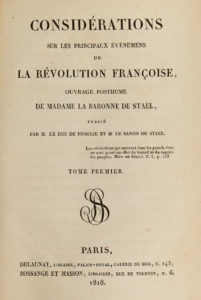 Anne-Louise-Germaine de STAËL-HOLSTEIN. Considérations sur les principaux événemens de la Révolution Françoise. Paris, Delaunay, Bossange et Masson, 1818. 3 volumes in-8, demi-basane fauve à coins, dos lisses ornés (Reliure de l'époque)....