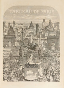 Edmond TEXIER. Tableau de Paris... Paris, Paulin et Le Chevalier, 1852. 2 volumes in-folio, percaline noire ornée sur le premier plat d'un grand motif doré représentant Notre-Dame flanquée de la colonne Vendôme et de la colonne de la Bastille,...