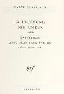 Simone de BEAUVOIR. La Cérémonie des adieux. Suivi de Entretiens avec Jean-Paul Sartre. Août-septembre 1974. Paris, NRF, 1981. Fort in-8, broché, chemise et étui. Lh., 68 /// 559-(2f.). Édition originale de ces souvenirs consacrés à Sartre,...