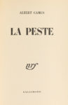 Albert CAMUS. La Peste. Paris, NRF, 1947. In-12, maroquin janséniste ébène, dos à 5 nerfs, doublure et gardes de maroquin rouge, tranches dorées sur témoins, couverture et dos, étui (Devauchelle). Lh., 131 /// 337-(1f.). Édition originale. Un...