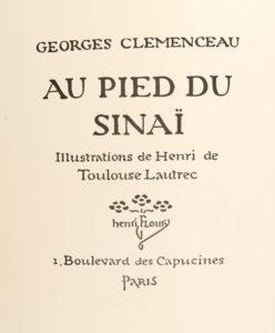 Georges CLEMENCEAU. Au pied du Sinaï. Paris, Henri Floury, 1898. In-4, broché sous couverture illustrée et rempliée, étui moderne. Monod, I-2868 /// (2f.)-107-(2f.). Édition originale illustrée d'une lithographie en deux tons à double page...