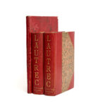 (2f.)-281-(1f.). Très importante monographie sur Toulouse-Lautrec, abondamment illustrée de 2 pointes-sèches originales hors texte et de nombreuses reproductions dont 22 planches en couleurs et 80 en noir. Respectivement un des 175 et 200 exemplaires sur Japon (n° 54), contenant 64 planches hors texte en noir en double état, les 2 pointes-sèches en double état, dont l'un en bistre et, réservés aux exemplaires de luxe, 4 pointes-sèches et 4 lithographies originales supplémentaires en double état. Du fait de leur format plus grand que les volumes, les lithographies (250 x 325 mm), justifiées 54/200, sont conservées dans une chemise à part. Bel exemplaire, bien complet des lithographies qui manquent souvent.