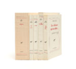id., 1975. Lh., 389-390 /// 604-(3f.). Édition originale de cet ensemble de volumes formant les tomes I et II du Miroir des limbes. 23 planches hors texte pour La Tête d'obsidienne. Un des 80 exemplaires de tête sur vélin de Hollande Van Gelder (n° 4) pour les Antimémoires. Et sur vélin pur fil pour les autres volumes (respectivement n° 90, 115, 260 et 288).
